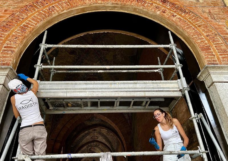 Nel caso degli archi del Palazzo Comunale, si è cercato un equilibrio tra tutela e sicurezza, ma il risultato finale ha inevitabilmente modificato la percezione estetica dell’opera vogheriana. Fortunatamente, contestualmente al consolidamento strutturale, sono stati ripresi alcuni affreschi, anche se molti altri richiederanno interventi futuri di manutenzione e valorizzazione.