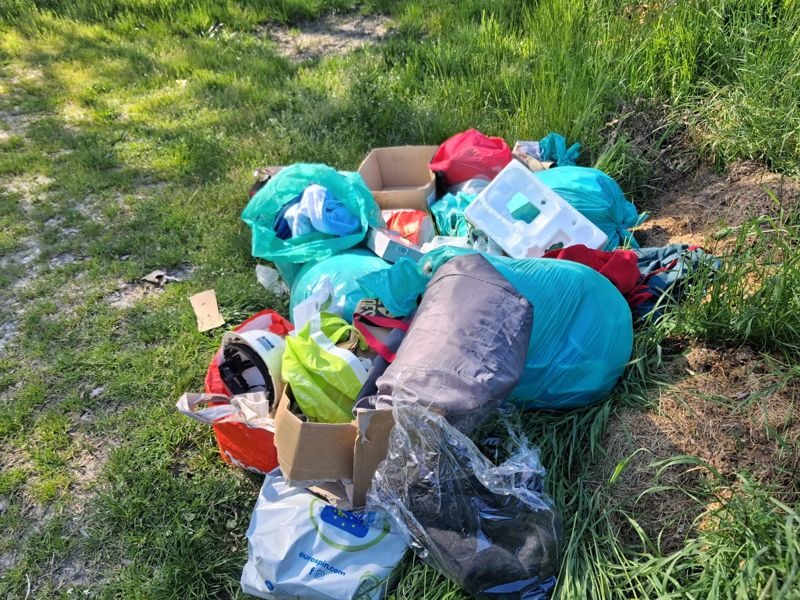 Stavolta invece sembra che qualcuno abbia svuotato qualche cantina o garage ed abbia pensato di liberarsi del materiale di scarto gettandolo in golena, in un luogo isolato e poco frequentato, lontano da occhi indiscreti e quindi indifeso davanti agli incivili. Ed ecco che il nuov cumulo di rifiuti restituisce ancora una volta una varietà dio oggetti, dal casco di protezione all'imballaggio in polistirolo, dalla busta della spesa al tappeto e l'immancabile borsone colmo di abiti vecchi. Tra la spazzatura, anche alcuni scontri di negozi da fuori regione, arrivati chissà come fin lì.