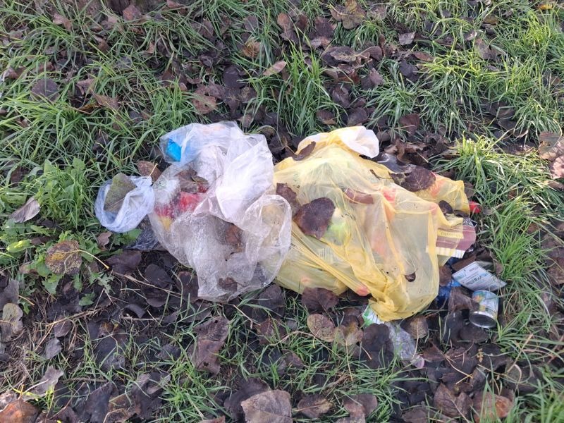 Due sacchetti pieni di bottiglie vuote, lattine, scatolette, rifuti di vario genere, lasciati proprio sotto il cartello che indica di non abbandonare rifiuti, quasi ad ulteriore sfregio verso questo angolo di natura che andrebbe valorizzato e non usato come discarica personale.