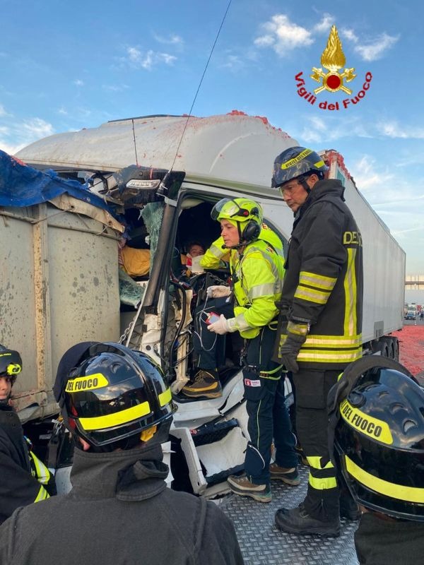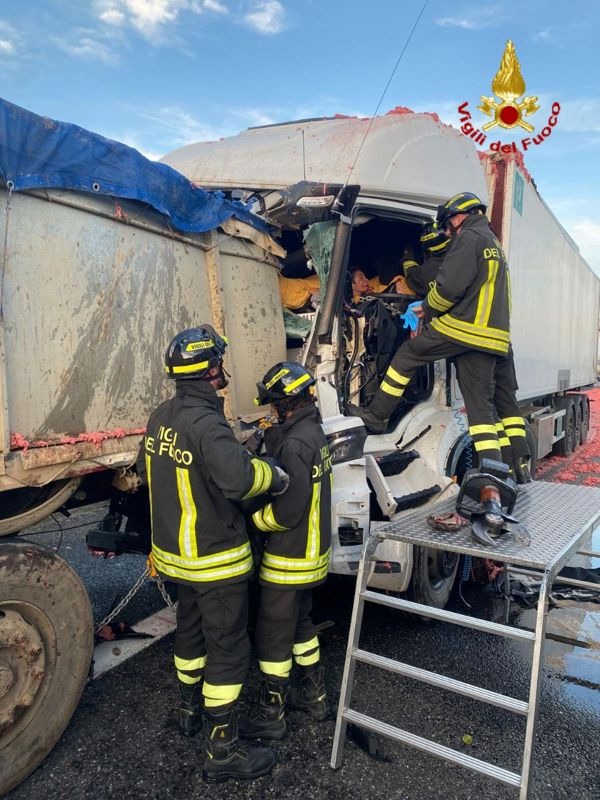 Violento tamponamento tra due tir intorno alle 18 sull’autostrada A21 Piacenza-Cremona-Brescia. E’ accaduto nel tratto tra Caorso e Castelvetro in corsia sud coinvolgendo due mezzi pesanti, uno dei quali ha perso buona parte del carico di polpa di pomodoro, che si è riversato sulla carreggiata. Sul posto sono giunti i soccorsi del 118. Con loro insieme ai vigili del fuoco giunti da Piacenza e Cremona: i soccorritori hanno liberato uno dei conducenti, una donna, rimasta incastrata nell’abitacolo del mezzo. Dopo le prime cure, è stata elitrasportata all'ospedale di Cremona. E' stato chiuso il tratto tra La Villa e Caorso e si sono formate lunghe code.