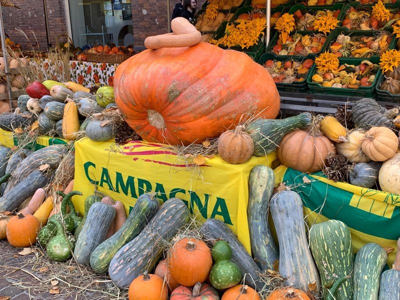 Il programma è particolarmente ricco. Alle ore 9, il mercato di Campagna Amica ha issato i gazebo gialli, per proseguire fino alle 19 circa. Propone l’esposizione di zucche giganti, la degustazione gratuita dedicata alla versatilità della zucca, offerta dalle aziende agricole, la vendita di zucche a un prezzo amico. La visita al mercato è occasione per scoprire tutti i prodotti dell’agricoltura cremonese e lombarda: dai sapori più tipici (come formaggi e salumi, pane e prodotti da forno, miele e confetture, ortofrutta di stagione, ma anche vino, birra agricola, riso, pasta, prodotti a base di lumaca) ai colori e profumi di stagione (con i fiori e con i prodotti nati dalla lavanda). Tra le novità proposte in questa uscita d’autunno, c’è il banco “i piccantissimi”, interamente dedicato al peperoncino.