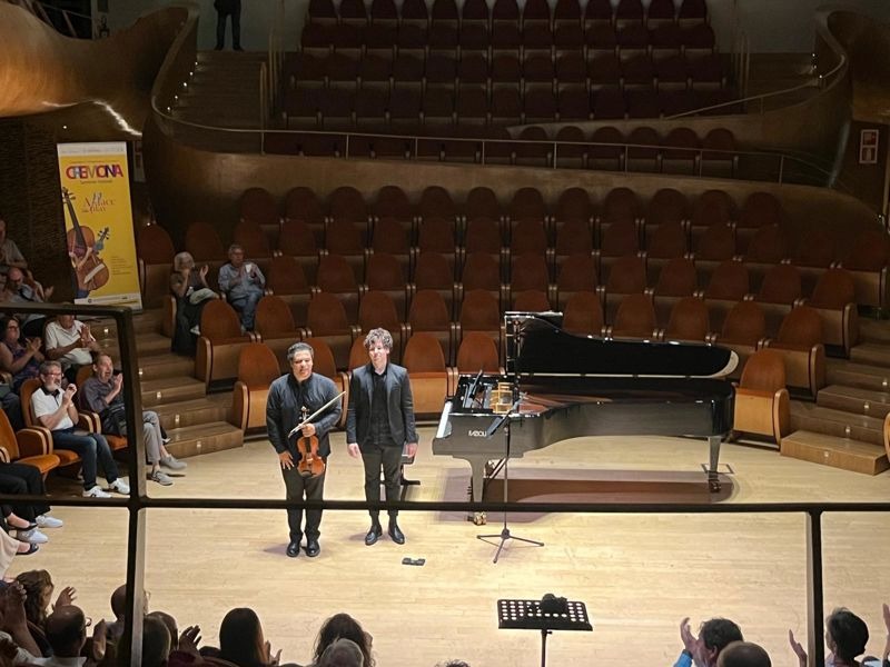 Si avvia alla conclusione il Cremona Summer Festival 2025, manifestazione che anche quest’anno ha offerto, sul territorio cittadino e provinciale, una serie di eventi, concerti e masterclass che hanno portato in città talenti provenienti da ogni angolo del mondo. Ospite speciale di questa sera nell’Auditorium “G. Arvedi” il duo formato dal violinista statunitense Thomas Lee Cooper e dal pianista croato Aljoša Jurinić, due giovani artisti già vincitori di numerosi concorsi internazionali. Il duo ha proposto un programma ampio ed eterogeneo, alternando autori di quattro differenti epoche e stili, permettendo così al pubblico di apprezzare appieno le doti tecniche e interpretative dei musicisti.