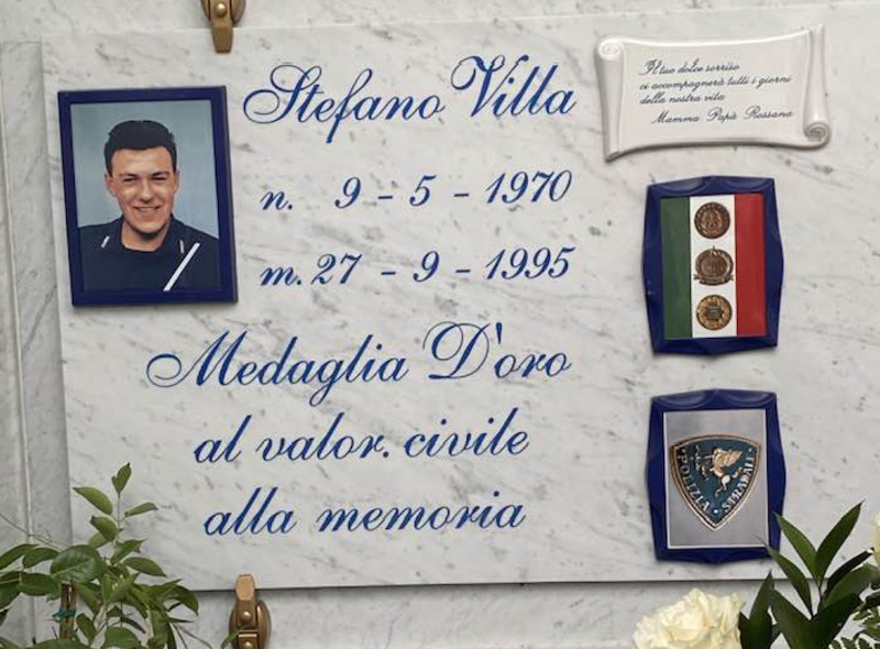 Nato a Cremona, studente all’Istituto Ghisleri di Cremona (dove gli è dedicata dal 2016 l’Aula Magna), Villa viveva a Castelvetro Piacentino, dove gli è dedicata una piazza (quella dietro al municipio); quella stessa piazza in cui sabato mattina, a trent’anni esatti dalla scomparsa, in tanti lo hanno voluto ricordare nel corso della cerimonia organizza dalla Polizia di Stato insieme al Comune di Castelvetro Piacentino. C’erano il questore di Piacenza Ivo Morelli, il sindaco di Castelvetro Silvia Granata, gli studenti dell’Istituto Ghisleri e delle scuole di Castelvetro; c’erano i colleghi di Stefano, quelli di ieri e di oggi, c’erano tante persone che lo hanno conosciuto, stimato e lo tengono vivo nel loro ricordo e c’era il papà Enrico che, ancora una volta, ha ricevuto l’abbraccio commosso di tutti. Nel corso della toccante cerimonia sono anche stati donati, alla Polizia di Stato di Guardamiglio, due ritratti di Villa: uno realizzato da uno studente del Ghisleri e l’altro opera realizzata con la tecnica del pirografo dall’artista Luca Bonatti di Busseto, che in gioventù ha condiviso con Stefano Villa una bella e sincera amicizia. Stefano Villa, giusto ricordarlo, nacque a Cremona il 9 maggio 1970 e viveva a Castelvetro Piacentino. Frequentò la scuola superiore presso l’istituto Ghisleri di Cremona ed entrò in polizia nel 1992, dopo aver frequentato il 129° corso presso la scuola Pol.G.A.I. di Brescia, fu assegnato alla Polizia Stradale, prima presso il reparto di Arcore e quindi presso la Sottosezione autostradale di Guardamiglio. Il 27 settembre 1995, durante un servizio di polizia giudiziaria presso il casello di Melegnano, Villa intervenne insieme ad un collega per impedire il compiersi di una rapina a mano armata ingaggiando un violento conflitto a fuoco. L’ex studente del Ghisleri venne purtroppo colpito a morte dal rapinatore mentre il collega, il vice ispettore Marco Calderoni, rimase gravemente ferito. Nello specifico, quella drammatica sera del 27 settembre 1995, mentre erano in servizio antirapina, i due poliziotti intercettarono un malvivente, tale Marco Antoniali, ex dipendente delle Autostrade licenziato a causa di troppe assenze, che per altro aveva già assaltato diverse volte il casello di Melegnano, fatto oggetto di rapine per ben 27 volte nei primi mesi di quell'anno. I due poliziotti notarono verso le 21.15 un'autovettura, la Fiat Uno grigia condotta dall'Antoniali, che arrivata da nord usciva dall'autostrada e faceva inversione per rientrare. Il ladro, con il viso coperto da un passamontagna ed una pistola calibro 38 Special in pugno tentò di rapinare il casellante ma venne colto di sorpresa dagli agenti, intervenuti per sventarne l'azione, che gli intimarono l'alt. In risposta l'Antoniali sparò tre colpi di pistola ferendo il Vice ispettore Calderoni che a sua volta fece fuoco colpendolo mortalmente con due proiettili al petto. Prima di risalire in auto e morire schiantandosi contro un guard rail a poche centinaia di metri, il rapinatore sparò nuovamente centrando con un proiettile al cuore Stefano Villa. I successivi soccorsi furono inutili e trasportato all'ospedale di Vizzolo Predabissi vi giunse ormai morto, mentre il collega fortunatamente si salvò. Le esequie di Stato furono tenute il 29 settembre 1995, presiedute dal grande Cardinale Carlo Maria Martini, Arcivescovo di Milano, nella Basilica di Sant'Ambrogio. Il 26 maggio 1996 il Presidente della Repubblica Oscar Luigi Scalfaro conferì a Stefano Villa la medaglia d'oro al valore civile consegnandola ai suoi genitori nell'occasione del 144esimo anniversario della costituzione del Corpo della Polizia di Stato. Il 10 maggio 2013, in occasione della Giornata della legalità, il Comune di Somaglia gli dedicò ufficialmente una via del paese mentre nel comune di Tavazzano con Villavesco gli è stato intitolato un parco giochi.