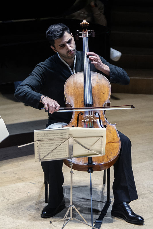 Dalla densità emotiva del primo movimento, Pezzo elegiaco, si sono levate tre voci coese ma dalla forte individualità: la voce del violoncello nelle mani di Soltani ha tornito il primo, languido tema, esaltandone le linee tragiche e al contempo eroiche – un vero e proprio epitaffio musicale.