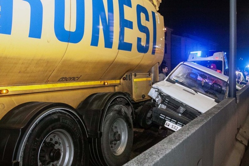 Una Fiat Panda rimane schiacciata tra un camion e il guard-rail in via Mantova, lunghe code ma nessun ferito grave