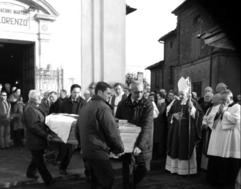 Nelle foto don Gianni Denti, poi con alcuni suoi compaesani e un momento delle esequie