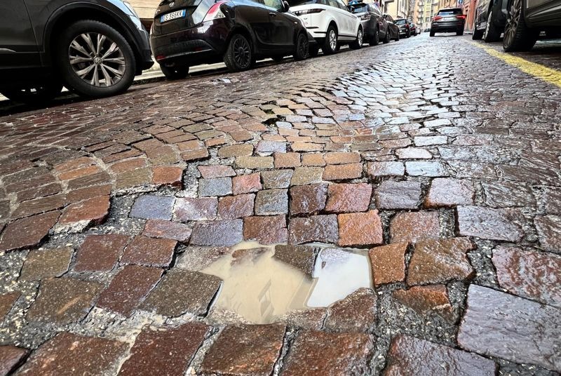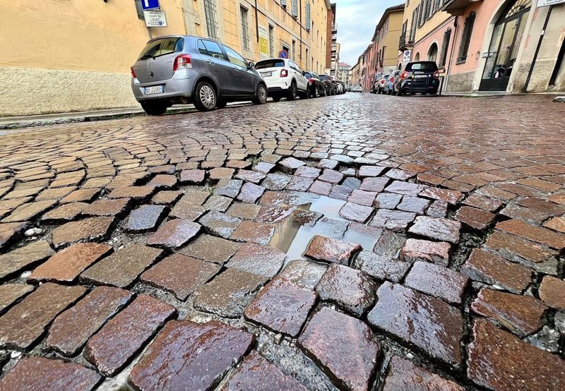 Come se si viaggiasse nel fango, auto e furgoni segnano il loro passaggio sulla pavimentazioni in porfido che evidentemente non regge il peso e sprofonda sempre di più, tanto che ormai i solchi sono davvero pericolosamente evidenti. Ma non solo, perchè in alcuni tratti l'insidia è rappresentata dalle buche che si sono formate nella via tra sampietrini sconnessi e fondo che cede: insomma, una vera e propria gimkana, un percorso ad ostacoli che rende difficile la guida per gli automobilisti, anche mantenendo una velocità adeguata, ma soprattutto per chi viaggia su due ruote e si vede costretto a restare al centro della via per trovare un po' di stabilità.