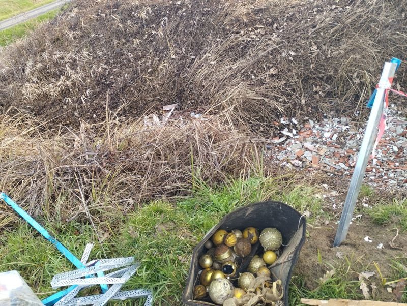 Nel frattempo, siccome è ben nota l'equazione che lo sporco chiama sporco ed il degrado chiama degrado, questo luogo eletto suo malgrado a "discarica" libera per gli incivili, è stato di nuovo oggetto di abbandoni, tanto che addirittura è stato lasciato un borsone colmo di palline di Natale evidentemente non più gradite dal proprietario. Del resto è da poco passato il tempo di rimuovere gli addobbi delle feste... Ma non c'è solo quello, perchè proprio accanto al succitato nastro segnaletico sono apparsi nuovi scarti di cantiere, secchielli, mattoni, assi. Di tutto un po'. Il timore per chi ci segnala questo continuo stillicidio è che, in attesa dei tempi di legge per la rimozione dei rifiuti, la quantità di materiale aumenti sempre di più e che in mezzo ci finisca anche materiale pericoloso per la salute.