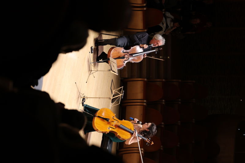 A guidare questo viaggio Mario Brunello, nocchiero e ideatore di un progetto insieme artistico e formativo, costruito nell’alternanza tra la sua presenza sul palco e quella degli allievi dell’Accademia Stauffer. Ne sono nate due serate dal carattere non convenzionale, vivo e laboratoriale, in cui la trasmissione dell’esperienza musicale entrava naturalmente nella dimensione del concerto. Concerti-intervista, dunque. La prima sera il Maestro, microfono alla mano, ha interrogata l’allieva visibilmente emozionata, accendendo nel pubblico la curiosità per questa bellissima e oscura musica.