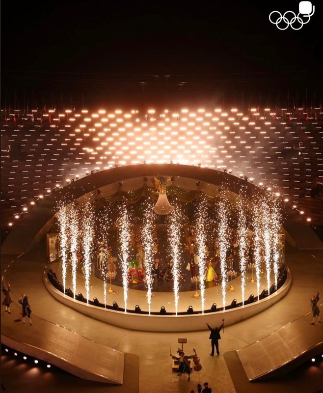 Sulle note immortali de La traviata, tra camelie, danzatrici, lumières, donne chandelier e orchestra, le luci si accendono e la coreografia si dispiega sulle note di “Libiamo ne’ lieti calici”. È un brindisi alla vita, alla fatica, al talento. È un brindisi allo sport. I costumi, firmati da Stefano Ciammitti, raccontano un’Italia capace di unire tradizione e visione, materia e sogno. La scelta stilistica segna un passaggio culturale: non solo abiti di scena, ma simboli. Tessuti che parlano di artigianalità, linee che evocano futuro. L’Italia, ancora una volta, sceglie di narrarsi attraverso la bellezza.