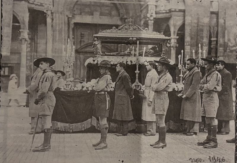 Quasi subito entrai nel gruppo dei grandi che affiancavano le voci bianche (tutti maschietti) e ricevetti la mia divisa, una tunica bianca com’era e forse è ancora tradizione in tutto il mondo, con cordone e croce pettorale in legno di colore verde: in fondo ad un cassetto li conservo ancora… con tanta nostalgia. Il coro solo maschile così costituito, aderì all’associazione internazionale dei “Petits chanteurs à la croix de bois” (detto anche “The Little Singers of Paris”), che inviava periodicamente le partiture da studiare.
