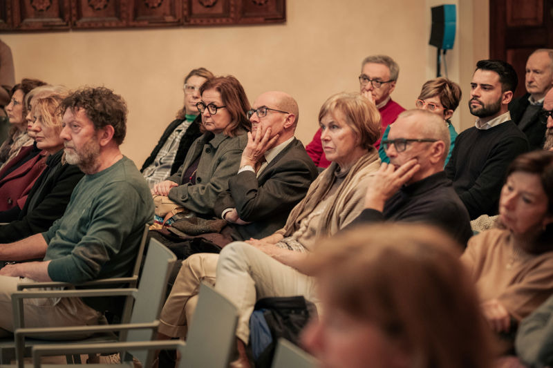 A conclusione, Laura Covelli ha emozionato i presenti leggendo un passo tratto dal "Libro della speranza" di Jane Goodall, prima di guidare il pubblico nella sala delle esposizioni temporanee, nel piano seminterrato del Palazzo Vescovile, dove la mostra prende vita.