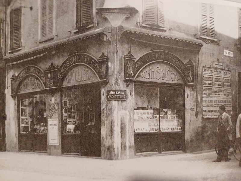 La Cartoleria Moschetti fondata nel 1863 all'angolo tra corso Garibaldi e via Goito
