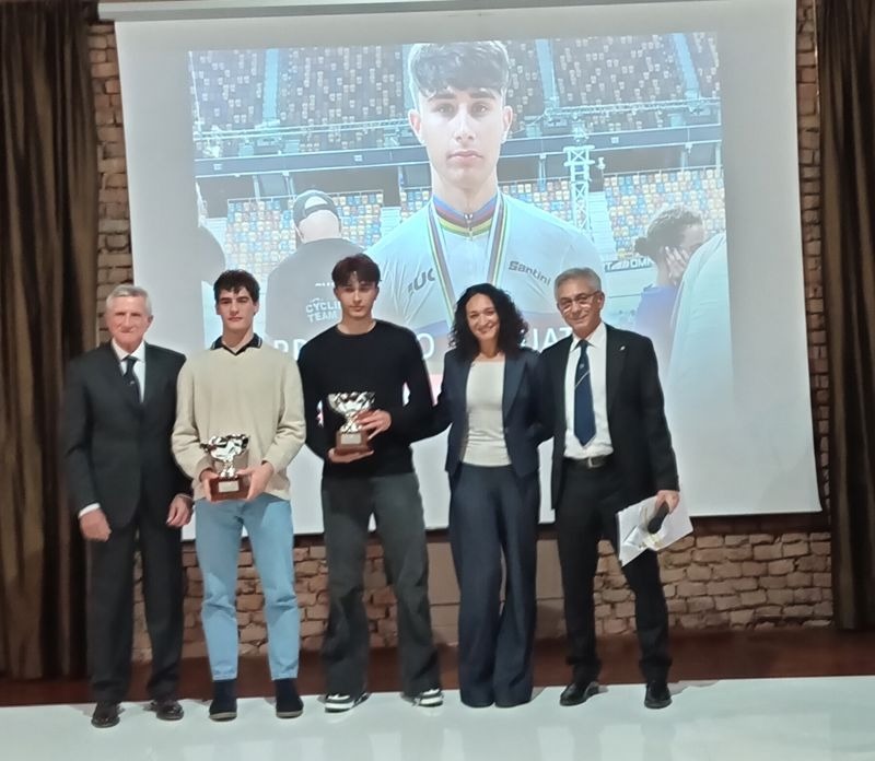 Successivamente sono iniziate le vere e proprie premiazioni; le prime ad essere consegnate sono state tre Targhe al Merito Sportivo che sono state assegnate a Giulia Bona dalla Vice Presidente Toninelli e dall’Allenatore Benemerito nonché Presidente Provinciale dell’Associazione Nazionale Atleti Olimpici ed Azzurri d’Italia Prof. Maurizio Mondoni, primo allenatore dell’attuale allenatrice della Cremonese Basket. Inoltre sono state assegnati anche al Tennis in Carrozzina della Canottieri Baldesio rappresentata da Alceste Bartoletti e Roberto Bodini che è stata consegnata dal Delegato CIP Bresciani ed infine all’Atletica Interflumina Casalmaggiore che è stata ritirata dal segretario del sodalizio casalese, visto l’assenza del Presidente Prof. Carlo Stassano. Poi è stato il turno della consegna dei Premi Panathlon, a Samuele Maffioli della Canottieri Bissolati settore paracanoa che ha ricevuto la coppa in memoria di Sergio Nolli, mentre le coppe intitolate alla memoria di Gino Alquati sono state consegnate al ciclista Federico Saccani e a Mattia Mari della Canottieri Flora settore canottaggio; mentre l’ambito Premio Panathlon è stato assegnato all’Unione Sportiva Cremonese per la promozione in serie A e che è stato consegnato dal Presidente del Panathlon Club Cremona Dottor Giovanni Bozzetti al Direttore Generale Paolo Armenia e al Responsabile dell’Ufficio Comunicazione Paolo Loda. Infine a completare l’elenco dei premiati sono stati assegnati due Premi Speciali, il primo a Giacomo Gentili della Canottieri Bissolati che è stato premiato dal Presidente della società cittadina Maurilio Segalini, ed infine a Federica Venturelli che per motivi personali era assente e che è stato ritirato dal papà. Infine a conclusione della serata è salito sul palco Don Marco Genzini, Cappellano dell’Ospedale Maggiore di Cremona che ha letto un pensiero natalizio di Papa Leone XIV.
