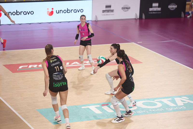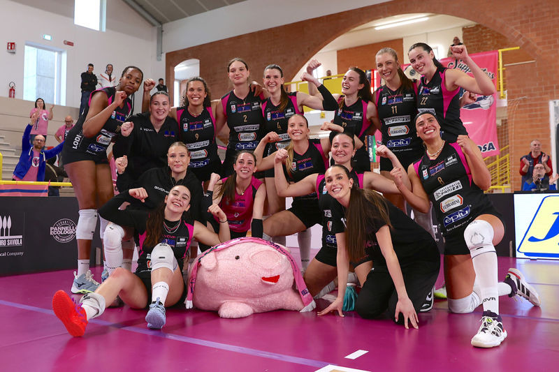 E'più: Pasquino 6, Ravarini 7, Nwokoye 9, Dumancic 8, Costagli (K) 13, Vazquez 15, Faraone (L), Nosella 1, Morandi, Rastelli 3. Non entrate: Mattioli, Neri, Stafoggia, Kovalcikova (L). All. Cuello-Beccari