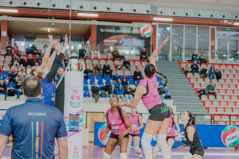 Secondo set. L'attacco di Nwokoye trova il tocco del muro e apre la seconda frazione, 1-0, il muro di Polesello su Costagli pareggia i conti, 1-1. Ndoye tenta l'attacco ma Nwokoye piazza il monster block, 2-1, Marchesini poi manda out, 3-1. Arriva anche l'ace di Costagli sulla riga di fondo, 4-1, poi la capitana rosa si ripete nello stesso modo, 5-1, time out Altino. Si torna in campo e il muro di Vazquez-Nwokoye ferma l'attacco di Siakretava, 6-1. Gran botta di Vazquez, diagonale stretta e 7-2, l'invasione fischiata a Siakretava porta Casalmaggiore sull'8-2. Dumancic porta le sue sull'11-6. Velenoso tocco di seconda di Pasquino che spiazza la squadra di casa, 12-7, il muro di Ravarini su Ndoye allunga nuovamente, 13-7. Le abruzzesi fanno 10-14, coach Cuello preferisce chiamare time out. Ravarini ferma l'inerzia delle rosso blu, piazzata e 15-12. Vazuez mette a terra il suo smash, 17-13, time out Altino. Vazquez tira la botta su Ndoye e fa 18-14. Costagli smasha sulle mani del muro e trova il 19-15. Nwokoye sfrutta la cattiva ricezione di Tesi e sigla il 22-16. Tutto braccio per Ravarini, Siakretava ci prova ma non contiene, 23-17, arriva poi l'ace di Costagli, 24-17, set point. Trampus manda fuori e chiude 25-17 come il primo set.