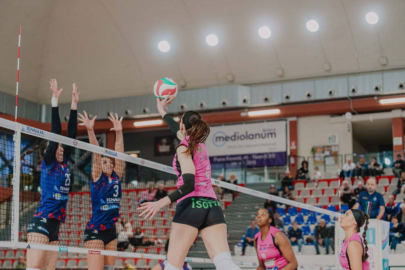 Quarto set. Polesello in fast apre la frazione, Trampus morbida fa 2-0, la pipe a rete di Ravarini fa 3-0. Costagli in diagonale trova il primo punto rosa, 1-3. Costagli piazza il suo attacco e fa 3-6, arriva poi l'ace della capitana rosa, 4-6. Il muro di Marchesini su Vazquez fa 8-4 e coach Cuello deve chiamare time out. Si torna in campo e la palla out delle padrone di casa regala i 5-8 a Casalmaggiore. Bella e potente la fast in diagonale di Dumancic, palla al centro del campo e 7-10, arriva poi l'ace di Vazquez su Trampus, 8-10. Altino si porta sul 12-8 e coach Cuello chiama time out. Dumancic mette a terra il pallone del 9-13. Sul 18-10 entra Rastelli per Ravarini mettendo a referto la sua prima presenza ufficiale. Botta a tutto braccio per Vazquez, 12-20, il murone di Nwokoye poi accorcia nuovamente, 13-20. Ndoye prova a passare ma Nwokoye piazza il muro, 14-21. Farelli manda out la sua battuta, 15-23, ma Siakretava trova la palla set 24-15 e chiude con un ace 25-15.