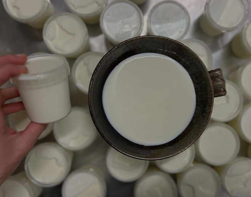 "Ecco il nostro yogurt naturale di pecora. Solo latte e fermenti cremoso, setoso, dolce.