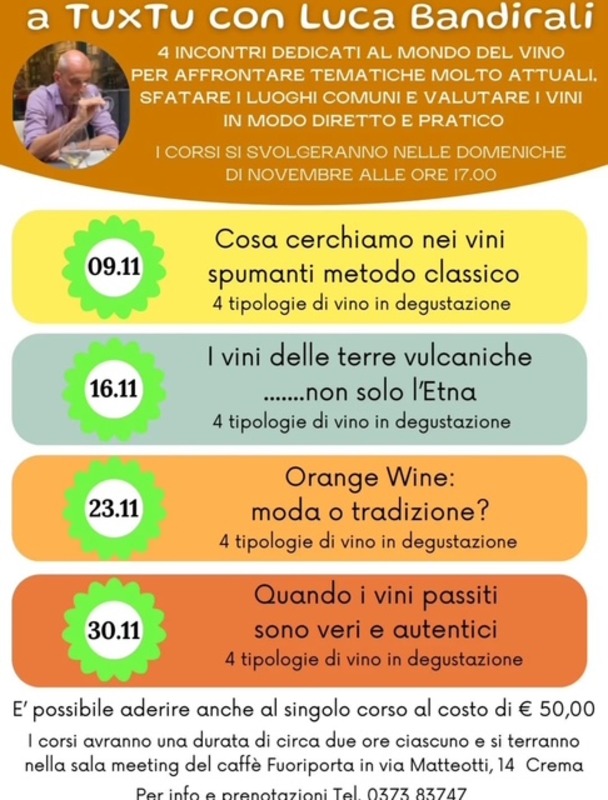 Comunicatore di...vino fuori dagli schemi, miglior sommelier del Granducato del Tortello, Luca Bandirali torna in cattedra per spiegare, in 4 domeniche, i vini