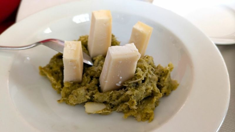"La storia locale della cucina cremasca permea i piatti di Bassano. La Repubblica Serenissima di Venezia ha lasciato impronte — o meglio, ingredienti — che immediatamente rivelano la possente eredità culturale lasciata in tali luoghi. In primis le spezie. Con il Pipèto e salva, si celebra un retaggio storico in cui questo piatto nasce. La Verza, il Grana Padano e la noce moscata. L'ortaggio è cotto lentamente, aggiungendovi uova e grana fino a ottenere una consistenza spalmabile. Il tocco è la noce moscata, capace di dare nuova vitalità a questa lunga preparazione. Il Salva Cremasco conficcato, svetta con la sua leggera acidità, rendendo questo piatto uno dei più brillanti di tutta la sequenza. La Serenissima, nella cucina cremasca di Bassano, vive ed è in forma smagliante più che mai con il tipico Tortello. Gli agrumi che la Repubblica coltivava sul "suo" lago di Garda raggiungevano anche i territori limitrofi ad essa collegati, da cui l'impiego in molte ricette padane come in questa storica preparazione. La pasta, nelle sue tipiche "creste", cinge il ripieno, in cui a brillare è la freschezza — seppur candita — dell'agrume impiegato nel ripieno. La dolce speziatura è calibrata al millimetro culinario, ponendo sul gradino più alto questo exemplum di pasta ripiena".